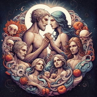 Po stworzeniu kości świata i jego oddechu, Alcarón i Isairia trwali razem w harmonii, otuleni spojrzeniem Sélëne. Z ich jedności nie powstała namiętność, lecz zamysł, a z niego – czworo boskich dzieci, urodzonych nie z ciała, lecz z idei i potrzeby dopełnienia świata.